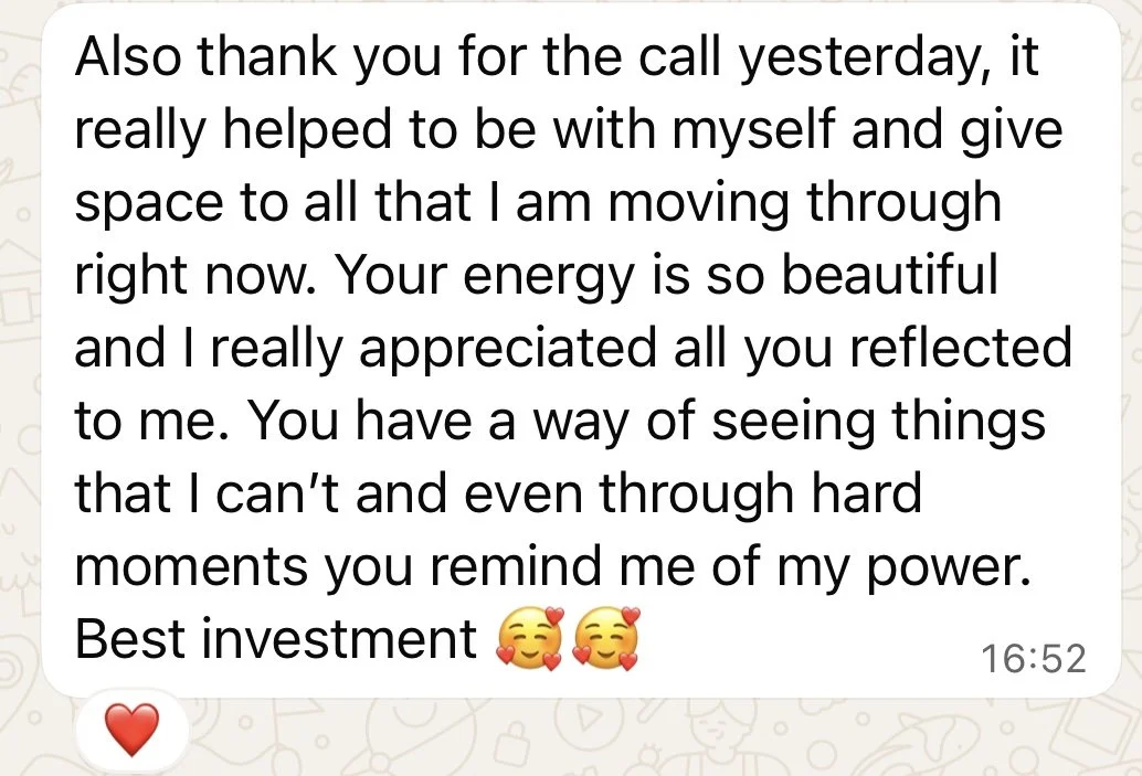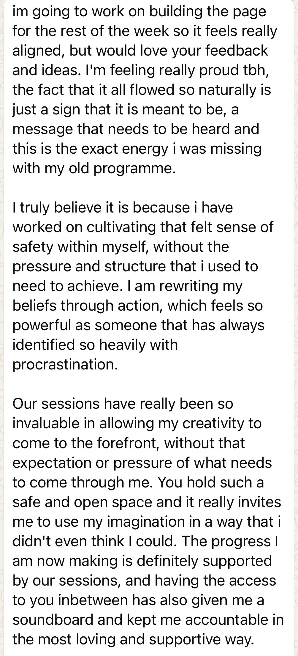 During our 12-week 1:1 private mentorship, including ongoing WhatsApp support, Samantha: